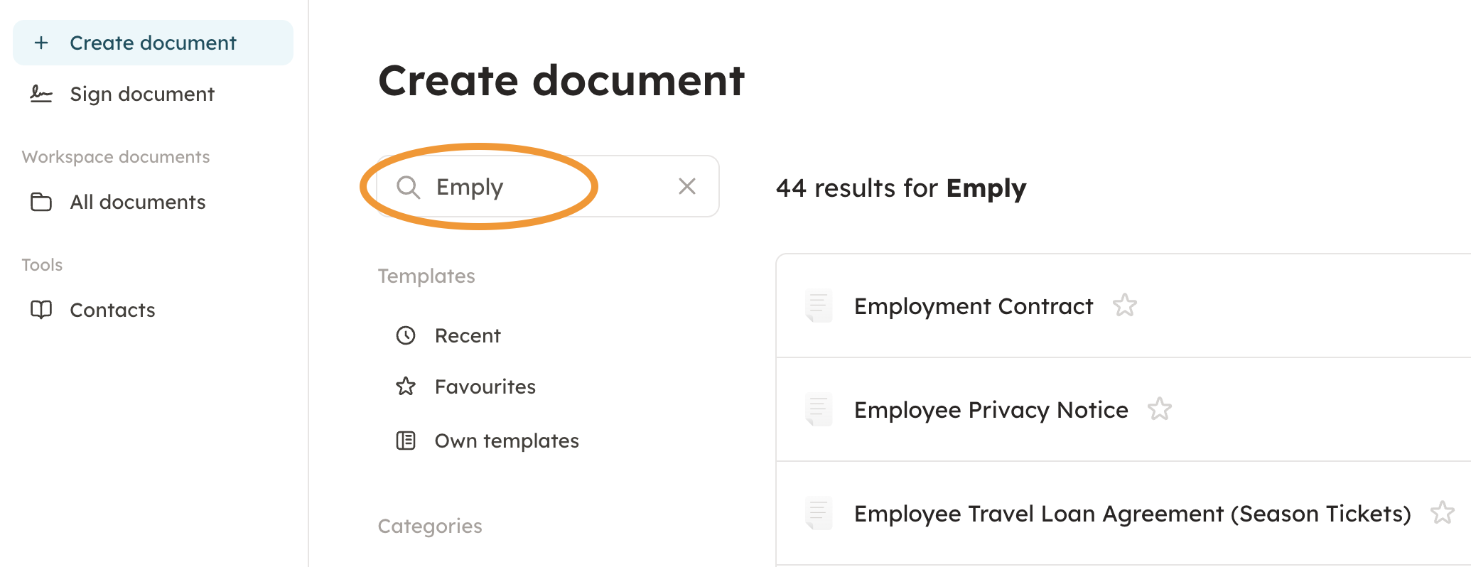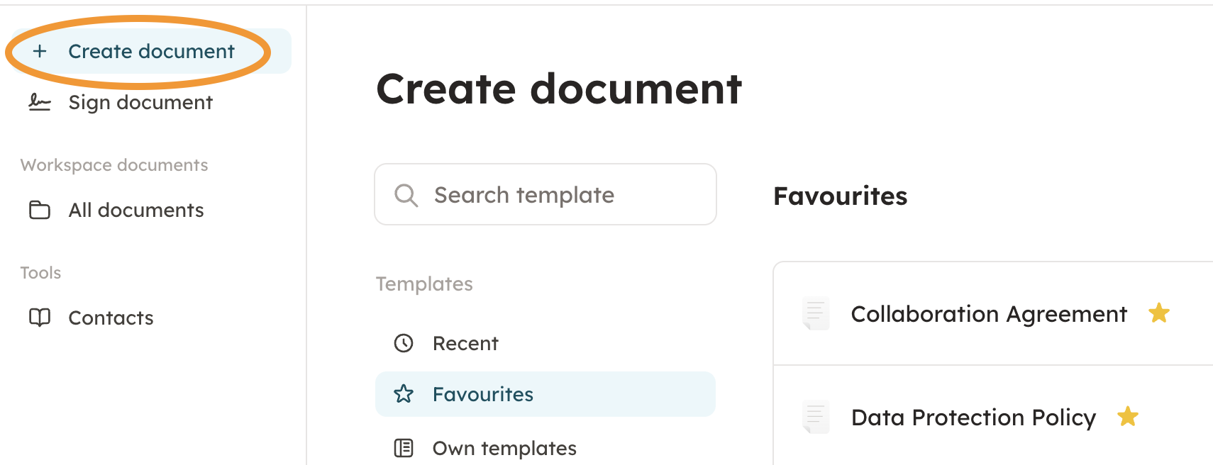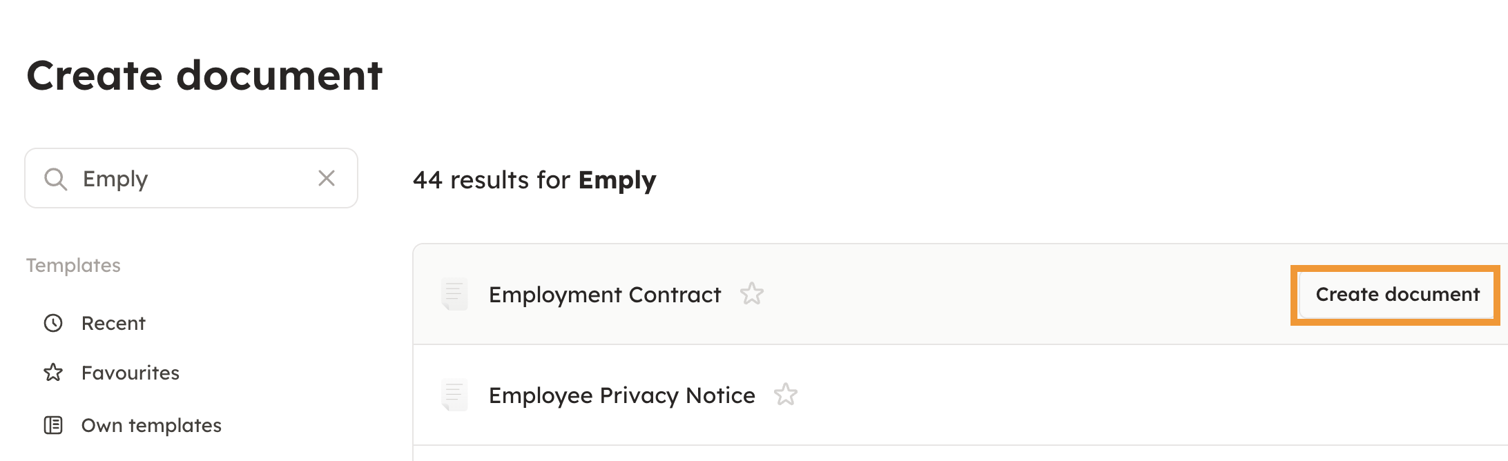 3. Choose the template by moving the cursor over it, and by pressing "Create document".