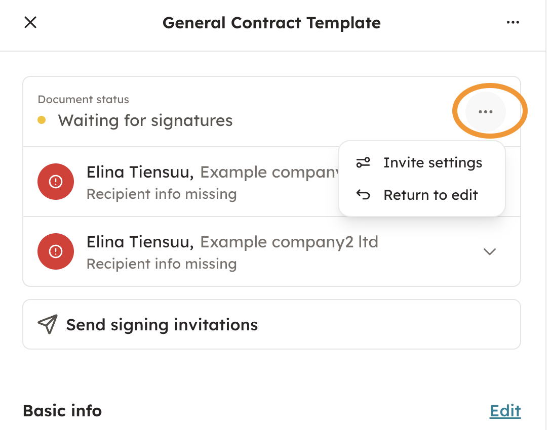 You can choose to "share signing link", "sign now" or "remove the signee", by choosing the three dots from the lower left corner.