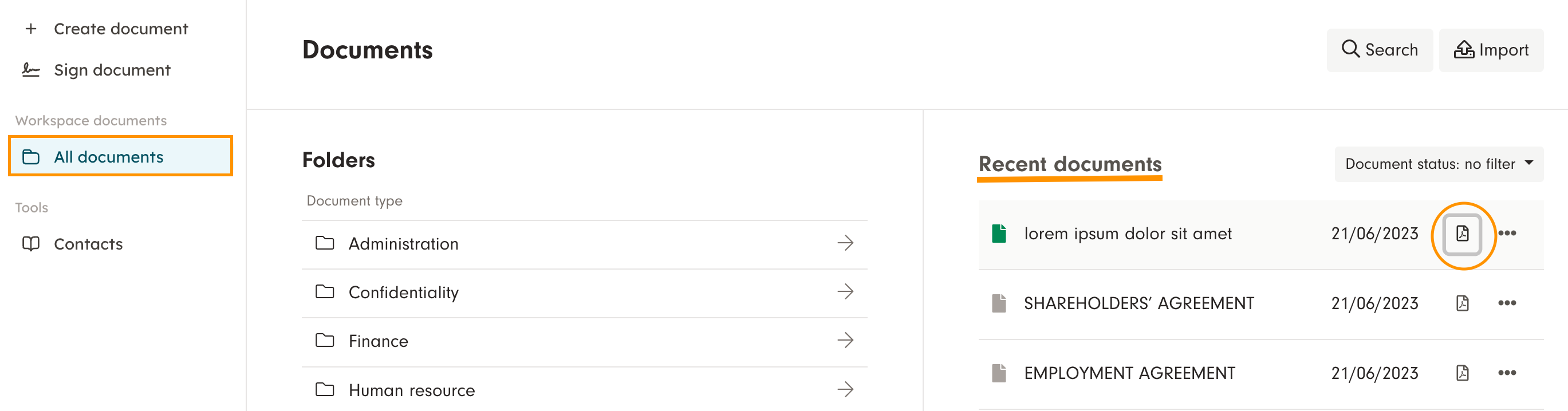 You have several ways of downloading documents from the platform.