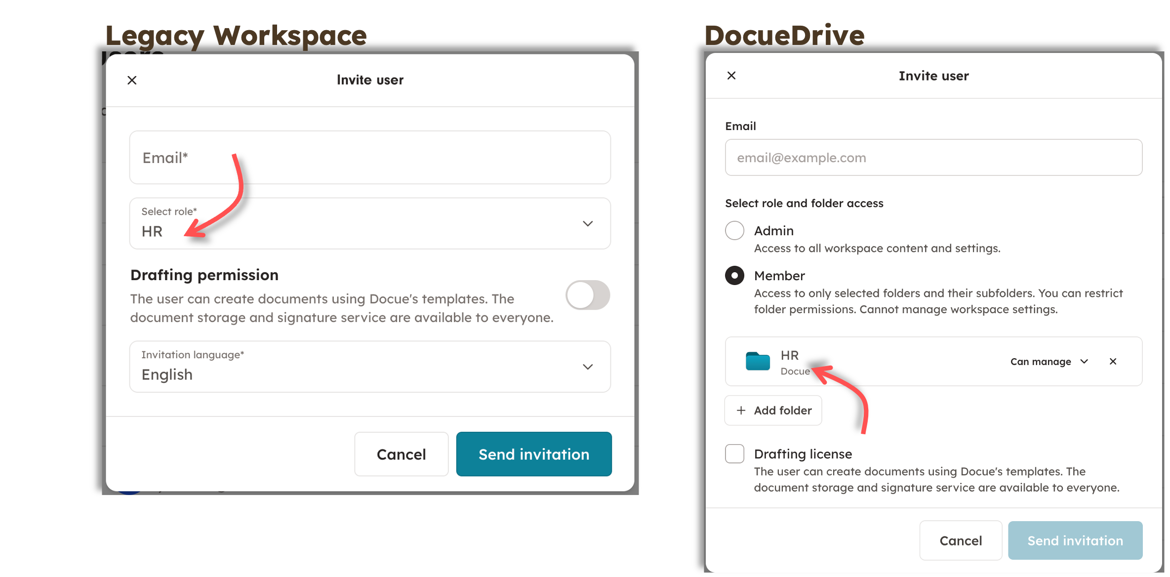 Drafting license (or drafting permission) (= the ability to draft documents using the service's templates) remains the same in Docue Drive.