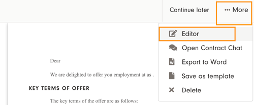 The Editor tool and the Word converter can be found in the document editing view under "More".
