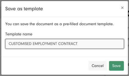With Docue it's possible to save self-filled document templates to your Docue account, essentially creating your own customised templates. Pre-filled document templates make it easier and faster to draft contracts in situations where only a small amount of information changes each time it's drafted.