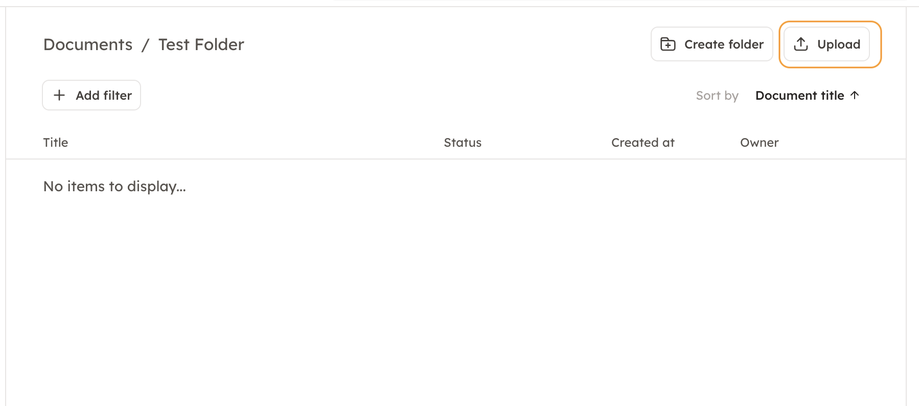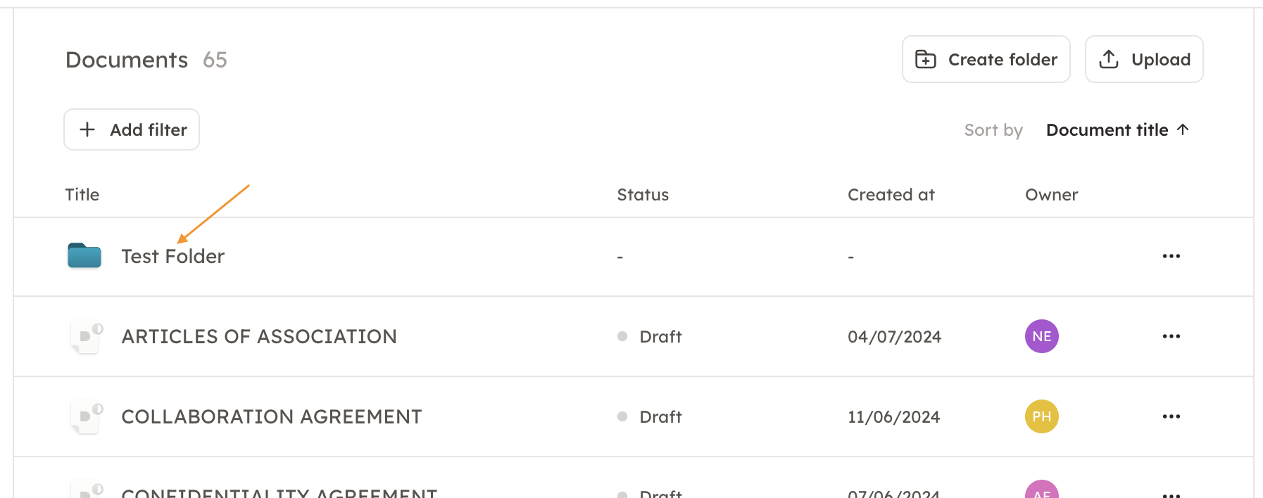 1. Start by choosing in which folder you would like to upload the documents, and open that folder.