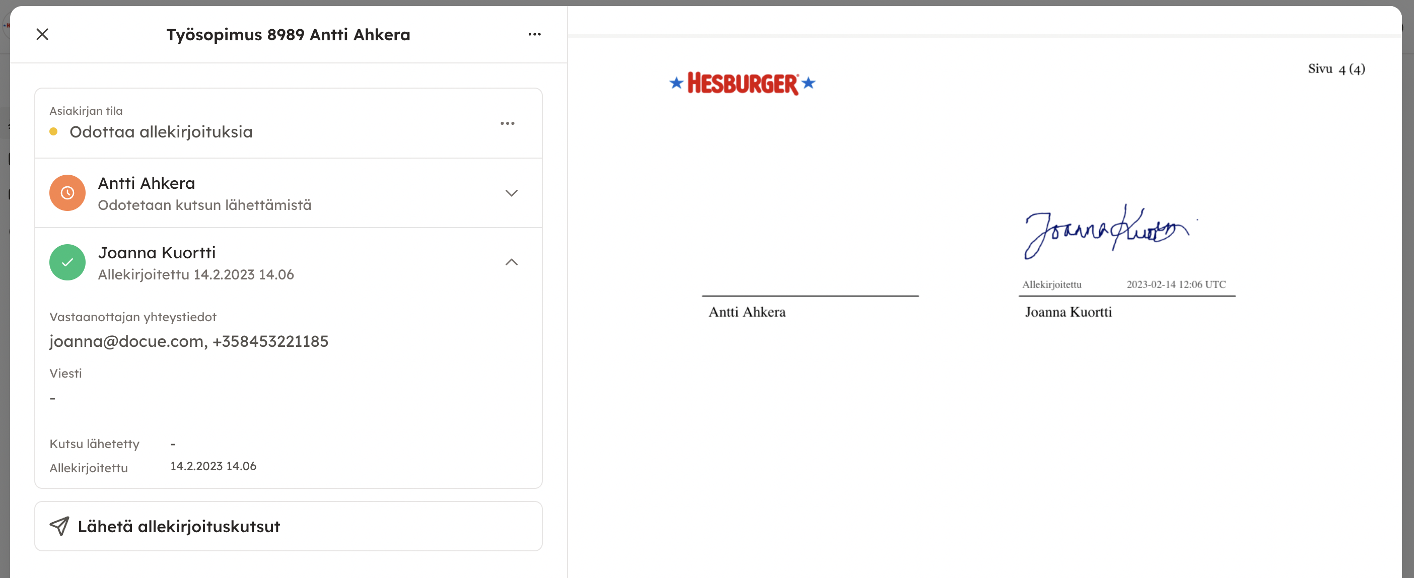 Hesburgerin ohje Docuen palvelussa laaditun asiakirjan sähköiseen allekirjoittamiseen